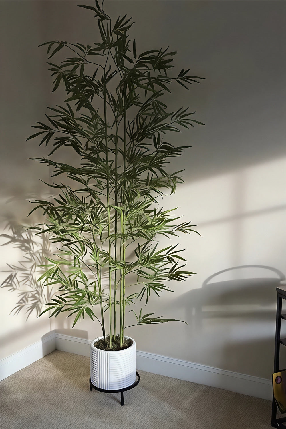 Golden hour glow + faux bamboo = cozy corner magic 🌿✨ No watering, no mess—just pure calm vibes.