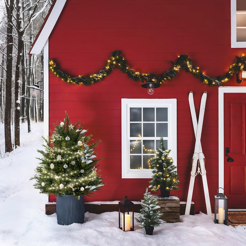 The cedar tree combined with the elements of various festivals can make the whole space more atmospheric.
